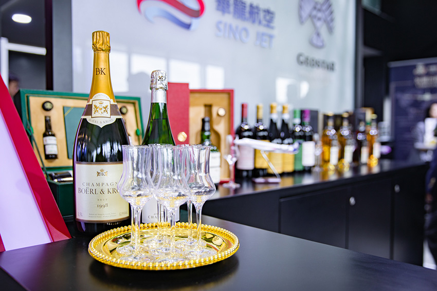 华龙航空重视服务中的每一个环节,曾经提出了“7C”服务理念,用7种美食美酒来呈现公务机优质服务,被业内广泛推崇。此次华龙航空联合合作伙伴金樽格兰呈现了其代理的系列珍稀世界名酒,包括老酋长苏格兰单一麦芽威士忌、最后一滴威士忌、昆塔莱利葡萄酒和B&K香槟,为与会贵宾带来极致的味蕾体验。