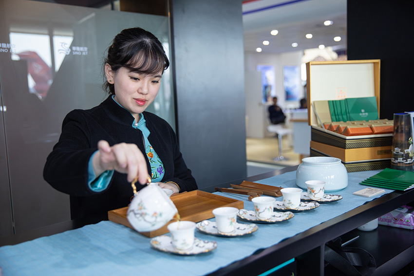 自2018年宣布与华祥苑达成战略合作以来,华祥苑庄园茶作为华龙航空自有公务机机队指定茶叶,在万米高空中为包机客户带来茗香四溢的飞行体验,受到客户高度认可。在此次亚洲公务机展上,华龙航空与华祥苑在展位为与会贵宾带来多国领导人曾品鉴过的国缤小蓝罐茶,再现华龙航空公务机上的服务标准。