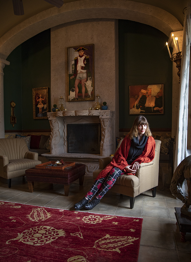 几年过去,她办了几场展览,包括“蛋人与海象”和“山上眼”,举办地点都在新墨西哥州圣菲。如今她成了全职画家,穿梭于法国西南部和新墨西哥州阿拉莫斯之间。她轻松幽默的社会见解,正如她时而巨大的画布所描绘的那样,可能会让你误以为她生活在云端。事实上,这位土生土长的亚利桑那州人专攻的是艺术史,同时密切关注时事。